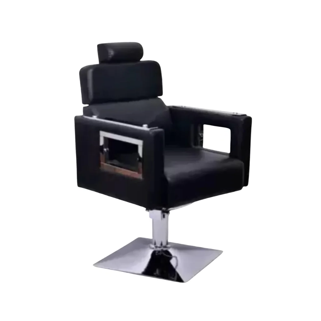 The MikeaInfo Global Enterprises Camera Handle Black Styling Chair (Black) is a modern and stylish salon chair designed to combine functionality with a unique aesthetic appeal. Its distinctive camera-handle design adds a bold and premium look, making it a perfect choice for contemporary salons and barber shops. Built with high-quality materials, it ensures durability and long-lasting performance even in high-traffic environments. The chair features a well-cushioned seat and ergonomic backrest, providing maximum comfort to clients during extended sessions. Equipped with a smooth hydraulic system, it allows easy height adjustment for stylists, while the sturdy base ensures excellent stability and easy maintenance.